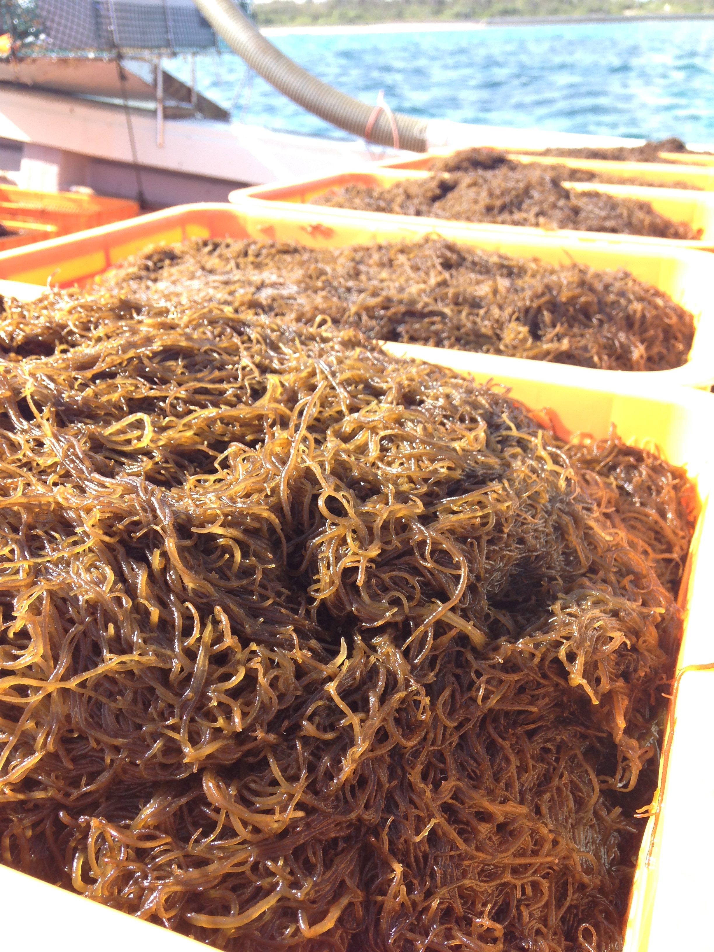 11時近くになると準備していたカゴにはモズクがいっぱい!