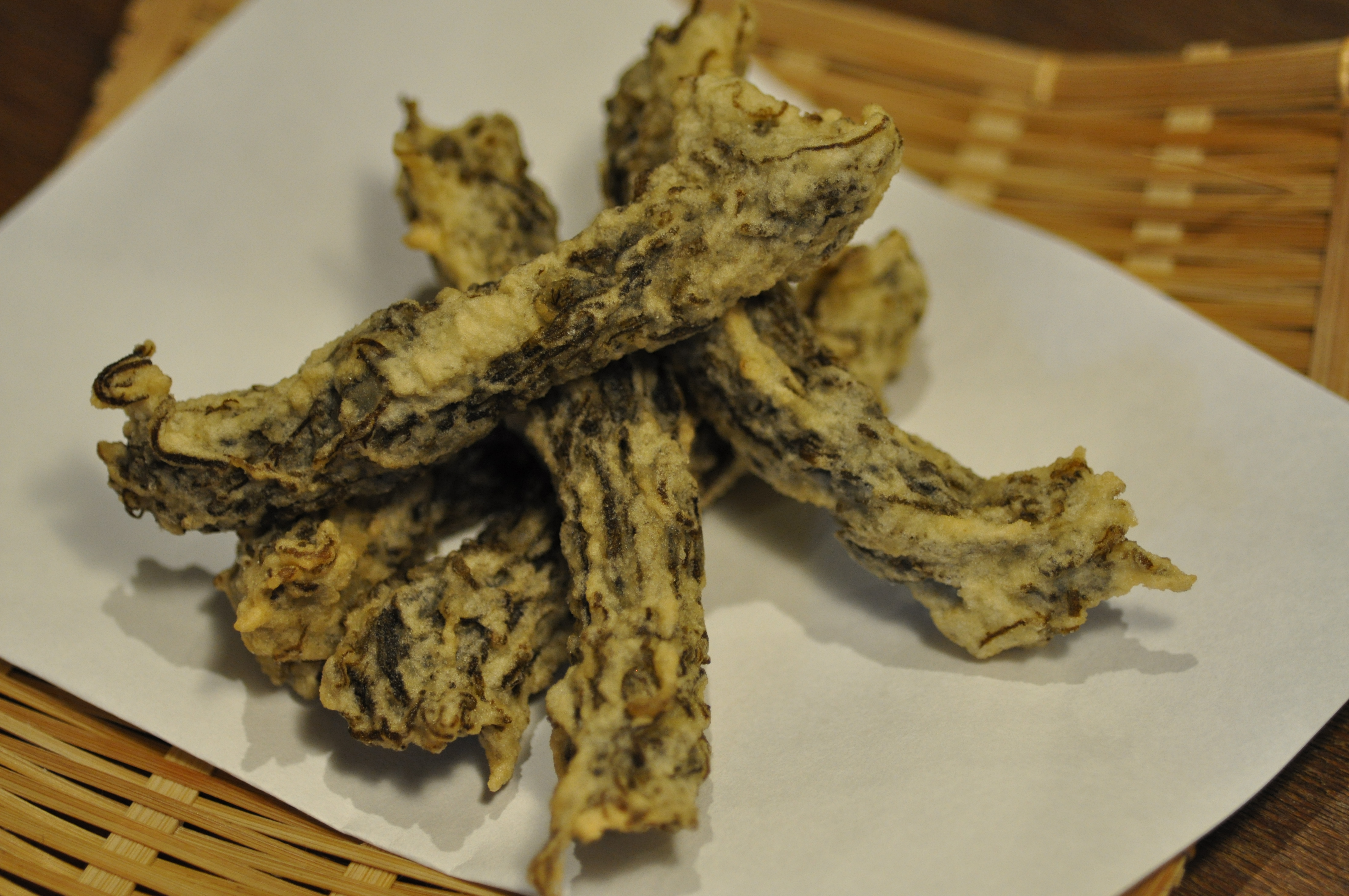 ・・・テーブルに並べられたもずく天ぷらを見て