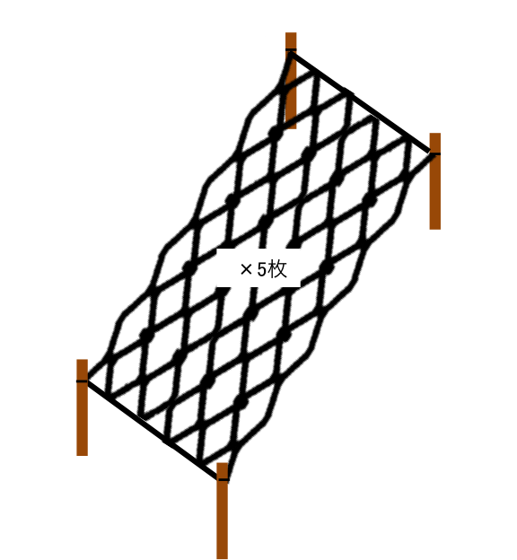 雑草を取り除いた場所に、網を海底から50〜60cmの位置になるように杭で止めます。